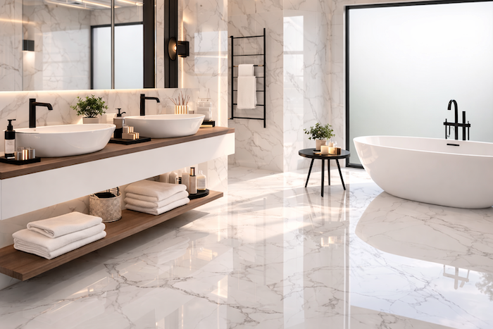 - Custom tile flooring solutions designed for durability, functionality, and visual impact;